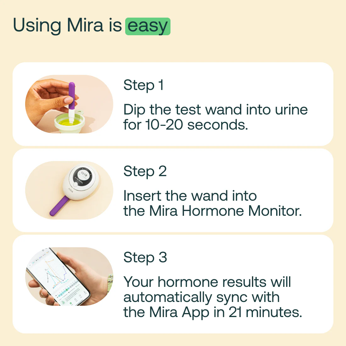 - Track FSH (Follicle Stimulating Hormone) with the Mira Ovum Wands to make future plans with confidence